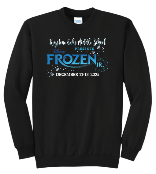 KEYSTONE OAKS MIDDLE SCHOOL - FROZEN JR: YOUTH & ADULT CREWNECK SWEATSHIRT IN BLACK OR PURPLE